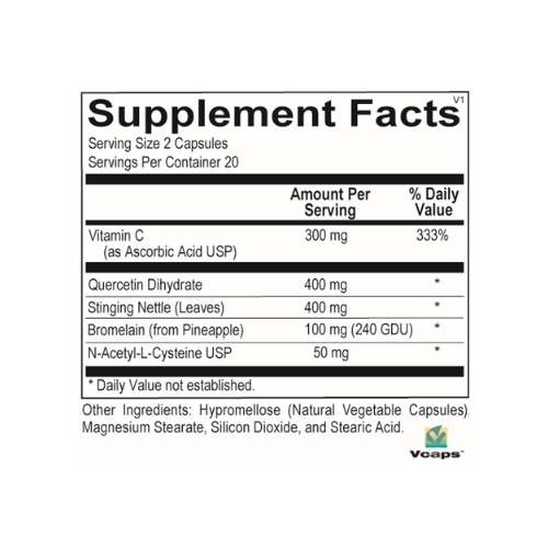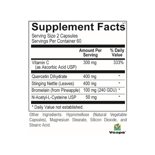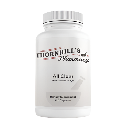 All Clear is a targeted blend of flavonoids, antioxidants, proteolytic enzymes and botanicals designed to provide comprehensive support for seasonal challenges caused by common environmental allergens. The formula includes quercetin, bromelain, stinging nettles leaf and N-acetyl cysteine. The powerful combination actively promotes healthy nasal and sinus passages for individuals with elevated histamine and respiratory irritation.